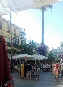 Or maybe head back to Sanlucar de Barrameda, of which I have written before ( see Contrasts ) the rather larger port and holiday town. Both Columbus and Magellan set sail from here, their voyages being recorded in sculpture and tile work around the town. The former completed his first circumnavigation of the globe from Sanlucar, while the latter returned to his own discovery of Hispaniola. The town is intensely proud of its hugely influential maritime history. On Sunday afternoons the Plaza de Cabildo is the place to be and be seen, amongst the bougainvillea entwined palms, as the inhabitants drink manzanilla or eat ice cream at the square’s two competing ice cream parlours.