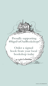 Authors (including me) agree to provide signed templates, designed by Chris Riddell, to their local book shop to paste inside that author’s books when they are sold. They also agree to post signed templates, with a message of the reader’s choice, to folk who email proof of purchase of a work by that author from an independent, physical book shop. I have set up the email account julieandersonbookplate@gmail.com specifically for this purpose. So if anyone reading this piece buys one of my books from an independent book shop, email me with proof of purchase, your address and chosen message and I’ll sign and supply a template (UK only I’m afraid, the cost of postage prohibits going international ). It is to be hoped that this nudges folk towards buying at their local independent, or even high street but physical, book shop. Mr Besos has a large enough fortune already and many of our small independents run on a shoestring. The initiative runs until the end of lockdown or 2nd December, whichever is later.